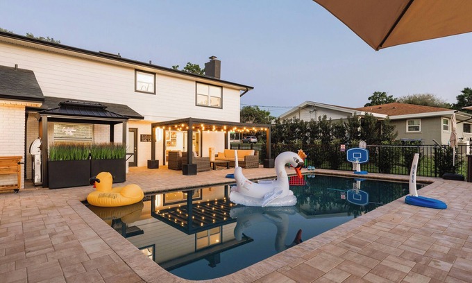 **Location** The house is situated in a lively area with plenty of shopping and dining options. It’s located on the same thoroughfare as Legoland, so traffic can be busy at times. Additionally, you may hear boats and jet skis on the lake. While the house and property offer a relaxing atmosphere, if you’re seeking complete quiet during your stay, this may not be the best fit for you.