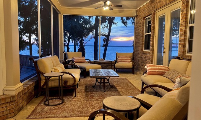 Experience luxury lakefront living at our private property on Lake Weir in Florida. With a beachfront bar and dock, experience lake life at its finest with boating, kayaking, and other watersports. Enjoy close proximity to the only two lakefront restaurants on the lake. This spacious home sleeps 15 people, making it ideal for family gatherings, reunions, or corporate retreats.