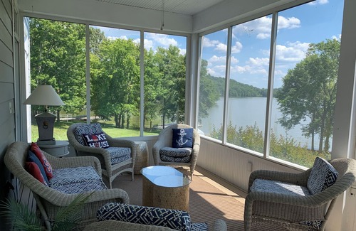 Paradise Point Peninsula describes this one of a kind Lake home. It is actually on a peninsula, surrounded by water on all three sides of a 900 foot waterfrontage lot. A 3 bed, 3 bath home: Master downstairs and 2 bedrooms up with private baths, We didn't skip any luxuries: granite kitchen, large fireplace, windows everywhere to capture the total panoramic view. Also there is a large 10x40' screened porch for dining, relaxing or even sleeping.You've never experienced a get away like this. You can walk along the private park like shoreline for 900 feet or simply sit on the double dock with sundeck for a water reflective moment. Built with high end materials and professionally decorated to give you a lake lover's lodge retreat that is unsurpassed. Once you visit you'll never forget our slice of paradise and long to return year after year.