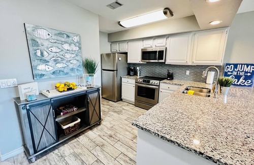 This is a great lock & leave style condo! Relax in this cozy get-away on Lake LBJ. Fabulously furnished & decorated condo, towels & dishes in place. In condo full size washer and dryer. Kitchen recently remodeled. Kuerig - bring your favorite coffee pods. Bathroom remodeled with new walk in shower. Pack your swim suit & let the fun begin! Located on the beautiful shores of Lake LBJ, day docks, jet ski ramps, swimming pool boasting waterfall & hot tub, lakeside picnic areas. Close proximity to the resort hotel, and within walking distance to the resort coffee shop and restaurants.