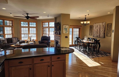 Welcome to Unit A1, a beautifully appointed 2-bedroom, 2-bathroom condo nestled within the Northernaire Resort on the shores of Deer Lake with walk out access to the waterfront. This spacious unit offers a perfect blend of modern amenities and Northwoods charm, providing an ideal retreat for families, couples, or small groups.