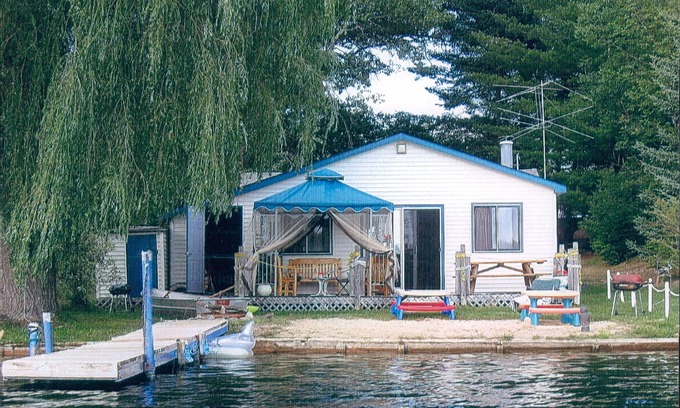 Chain of Lakes Cottage on Townline Lake is a private, clean, charming Lakefront 3 Bedroom Cottage, with private Sandy Beach, 25' Dock, and Gazebo on the deck for enjoying a terrific view of the entire crystal clear, spring-fed "All Sports" lake and channels. A Paddleboat, with a built in cooler, and Row Boat are included. This cottage is in a unique area because you are not confined to just one lake; all 5 lakes have easily accessible channels leading to the other lakes for more variety (Townline Lake, Sand Lake, Icehouse Lake, Boathouse Lake, Haven Lake and Lost Lake).