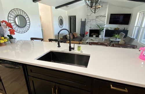 5 star rated!! Lakefront single story, renovated top to bottom. Looks like a model-home. Great for a large family or weekends on the lake with friends. This house has a pool table, kayaks, stand up paddle, sparkling clean pool, outdoor sitting area, fire pit, lounge chairs…pick your relaxation spot! Cold A/C and plenty of indoor amenities like a smart TV for streaming and a full size washer/dryer. Fully stocked kitchen and propane grill. Location is a quiet residential neighborhood with restaurants, retail within a mile. There is a 2 car garage and a long driveway. Dogs welcome with $100 pet fee. Dogs must remain on a leash outside the gated fence or be crated when left alone. Do not rent this house for a party. Out of respect for our neighbors, anyone who has an unauthorized party, will be evicted immediately and all money forfeited. There are 3 cameras on property. One at the front door, one facing the back patio/pool and one facing the driveway.
