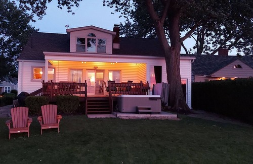 Wake up to sweeping, unobstructed Lake Erie vistas in this meticulously maintained lake-front retreat, perfect for families or a small group of friends. The home sleeps six comfortably in four airy bedrooms—and offers three bathrooms stocked with fresh towels and toiletries. Two expansive decks invite you to savor sunrise coffee or sunset cocktails, while an outdoor hot tub and an indoor cedar sauna turn every evening into a private spa session. Inside, central A/C, fast Wi-Fi, a fully equipped kitchen, and a finished basement with a theater room (plus seven flat-screen TVs throughout) ensure comfort and entertainment no matter the weather. A washer, dryer, board games, and a shelf of lake-view novels round out the amenities. Tucked in a quiet, safe neighborhood, the house is minutes from groceries and local dining, with Cedar Point, Kalahari Waterpark, and the Lake Erie Islands only about a half-hour drive away.