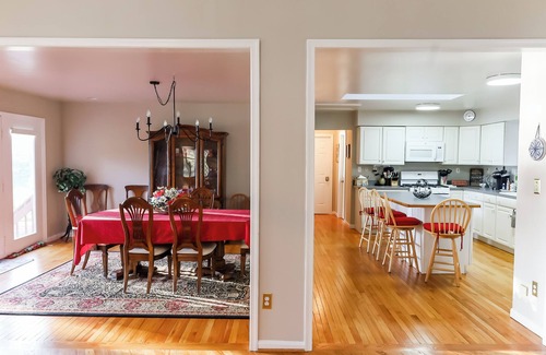 Embark to this spacious 5-bedroom waterfront home on the public side of Lake Anna. Set on a huge point lot, this vacation rental offers unbeatable lake views and plenty of outdoor space to enjoy. With use of the boat dock for fishing and lounging, plus a sandy beach, and a private firepit right at the water's edge, you'll have everything you need for a relaxing and fun-filled getaway.