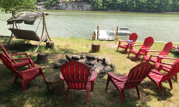 Recently renovated all new bathrooms new lakeroom living room!!! New wood burning fireplace coming fall 2024. Enjoy 4 seasons of beauty at our lake house, your private escape from the city. The lake house has a gorgeous big private yard with yard games and outdoor hot tub. You can swim right off the dock, fish, play games, make a bonfire or just sit and listen to the frogs.
