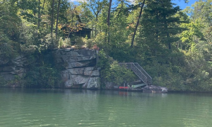 Perfect lakefront mountain getaway for relaxation or outdoor adventure! Mountain biking and hiking trails right out the door. Bring your SUP or kayak to explore the beauty of Tallulah Lake. Fish from your own private dock. Dedicated Home office space. When you are ready to relax, put your feet up on the screen porch with deep-cushion teak sofa and chair, or on the small private balcony upstairs. Includes Weber gas grill. Coffee shop and restaurant are within walking distance. This super cool lakefront A-frame and separate Studio/Office building is on picturesque Tallulah Lake. The lakefront A-frame consists of two bedrooms and one full bath, full kitchen, office area, large screened porch, washer/dryer, central heat, Wi-Fi, and smart TV. The separate Studio/Office building has screened porch, kitchenette, half-bath, outdoor shower, air conditioning and heat, Wi-Fi, and TV.