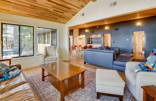 Enjoy a well-earned break and bask in the beauty of Big Star Lake when you book this Baldwin cottage! In addition to all the basics — like a well-equipped kitchen, a Smart TV, and free WiFi — the peaceful 3-bedroom, 2-bath vacation rental also provides a private beach and 2 fire pits. Spend the morning swimming and boating, then hike through Fred Meijer White Pine Trail State Park. Then, after a day of adventure, cozy up around the fire with loved ones. Your unforgettable Michigan escape awaits!