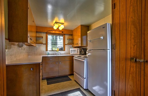 Easily prepare complementing dishes in the well-equipped kitchen, boasting essential appliances and cookware. Savor the meal inside around the 4-person dining table or feast alfresco on the furnished patio. After the meal, enjoy a cleansing shower in the en-suite bathroom before crawling into bed. Sleep soundly in the full bed, while additional guests and children find comfortable accommodations upstairs in the loft complete with a full-sized bed, 2 twin-over-twin bunk beds, and 2 twin mattresses.