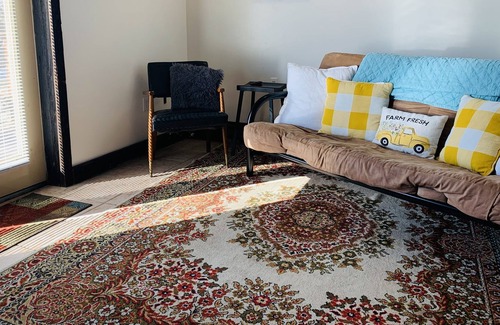 The home is furnished with one full size memory foam bed in bedroom 1, one full-size sleeper sofa in the living room. (We'll let you draw straws to decide who is sleeping where—ha!) The optimal number of guests would be 1-4 people.
