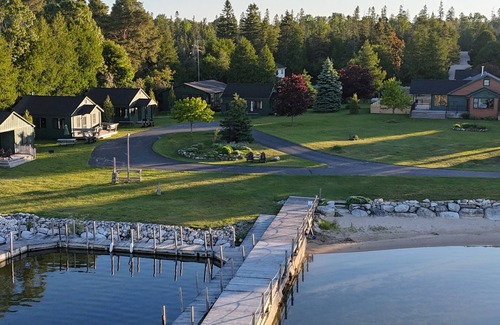 Hessel Bay Cabins are nestled in the heart of the charming harbor town of Hessel, Michigan, this stunning resort offers the perfect blend of modern comfort and natural beauty, with private access to 300 feet of sandy lake frontage and docks. Whether you're looking to relax, unwind, explore the great outdoors, or meet fellow travelers at the communal fire pit, this rental property has something for everyone. Cabin has one queen bed and one double bed. Learn more on our website (search for Hessel Bay Cabins).