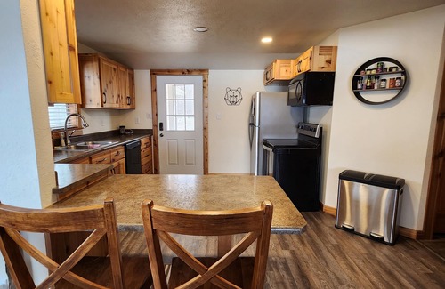 We love pets, but we ask that you limit the number to 2 small-medium breed dogs or 1 large dog. If you are bringing your furry loved ones, please keep them off the carpeted space. We have a baby gate in place so you shouldn’t have any issues doing this. Please keep your pets on leashes when outside of the cabin and pick up after them. Please stay off of the vacant lot next door and do not allow guests or pets on the other side of the fence. There will be a $100 per pet fee for the duration of your stay and a $250 refundable damage deposit for any guests with pets. Failure to clean up after your dog will result in a $50 fee. We do not allow for fireworks of any kind to be used during your stay.