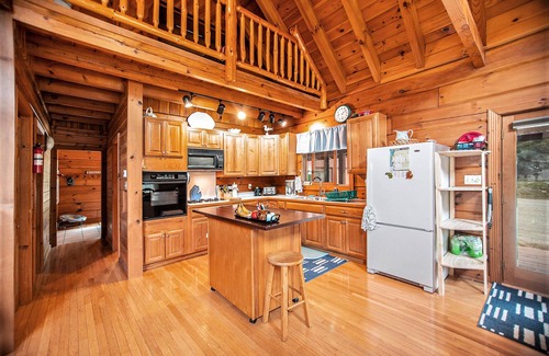 Amongst the Main Cabin and Guest Cottage there's ample space to gather and sleeping accommodations for 14. The main cabin boasts an open floor layout with a loft overlooking it all! On the main level you will find a fully equipped kitchen, dining area and living area with a doorway to the front porch. For your convenience the main bedroom is located on the ground level and offers a King size bed, Smart TV and views of the Lake. There is also a full bathroom on the main level. The upstairs loft offers a second bedroom with a queen bed, a trundle bed and the second full bathroom. Other amenities include a washer and dryer and extra refrigerator in the entry room. In the Guest Cottage you will find two additional bedrooms each with a queen bed and bunk bed set along with the third full bathroom. The newly remodeled recreational room offers the perfect space for family game nights and come morning enjoy the convenience of the recently added kitchenette and coffee bar.