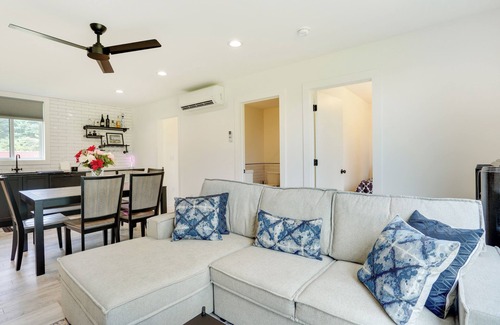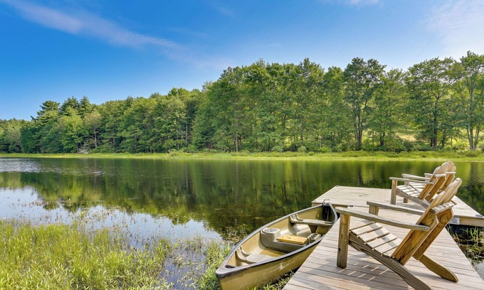 Enjoy a cozy lakeside retreat among the Catskill Mountains at this Swan Lake vacation rental. This new custom-built 3-bedroom, 2-bath container home sits on more than 100 private acres with a 10-acre lake and tons of ways to enjoy the outdoors, like a dock, kayaks and canoes, and fire pits. Fish off of the dock, head out for a peaceful ride on the water, then relax by the fireplace inside. If you’re looking to explore, take a trip to nearby Bethel Woods to learn about the history of Woodstock!