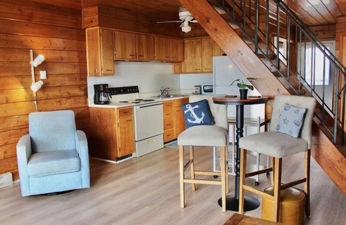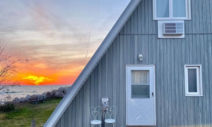 Welcome to Chalet 1, where breathtaking views of Lake Michigan await you! Our chalet is equipped with all the essentials for a memorable stay, including outdoor table and chairs, a charcoal grill for al fresco dining, Wi-Fi, a smart TV with a DVD player and a selection of DVDs, a dining table for six, a hair dryer, and a fully stocked kitchen featuring a microwave, refrigerator, stove, oven, toaster, slow cooker, and coffee maker. Stay cool with AC on the main floor and in both bedrooms, and stay warm with heating. Sleeping arrangements include a max of 6 guests, one bedroom with a full bed and bunk beds, and one bedroom with a queen bed and bunk beds- offering a picturesque lake view. Entertainment options abound with games and books provided, and parking is made easy with two dedicated spots.