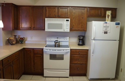 Feel at home in our 2 bedroom, 2 bath lakefront condo. Our nicely furnished condo, is truly a home away from home! Relax and unwind on the private covered deck while looking out to the swim dock and watching the kids swim. Enjoy cooking a home cooked meal in our well stocked kitchen. (there are charcoal grills up by the pool area for your use as well.) Rest peacefully in our spacious bedrooms (master bedroom has one queen bed, guest bedroom has two queen beds) Also, a Graco pack 'n play is provided in the guest bedroom closet. There are TVs in both bedrooms plus the living room, all equip with cable. You will find family games in the cabinet in the living room. Linens/bath towels are provided. (Make sure you pack your own beach towels!!!)