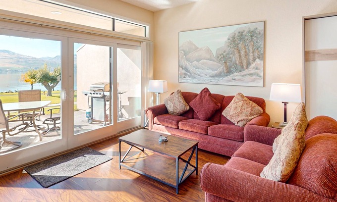 This cozy lakefront Chelan vacation condo offers deluxe amenities such as a shared pool, lake views, and a community hot tub. Set right on the southern shores of Lake Chelan, you'll also have dock and basketball court access, as well as beach access nearby. Two miles from the fairways at the Lake Chelan Municipal Golf Course, and just shy of three miles from the Chelan Riverwalk Park, this ground-floor condo puts you close to shopping, grocery stores, and popular eateries. Wine aficionados will love being in the heart of Lake Chelan's wine country with almost 30 wineries in the region. During wintertime, skiing and snowboarding are eight miles away at Echo Valley Ski Area.
