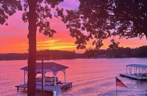 Welcome to our peaceful 1400 sq ft lakeside cottage on Logan Martin Lake near Pell City! Inside find 2 KING beds as well as 3 full bunks with 1 twin. Outside, you'll find 3 inviting patios where you can soak in breathtaking sunsets. Enjoy ample parking, a cozy firepit, and swim docks plus a lily pad to play on, adding to the charm of our lakeside oasis. With a convenient boat ramp onsite, and new boat whips on the pier, you can easily enjoy your lakefront vacation. Marina with dining/boats near.