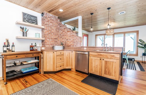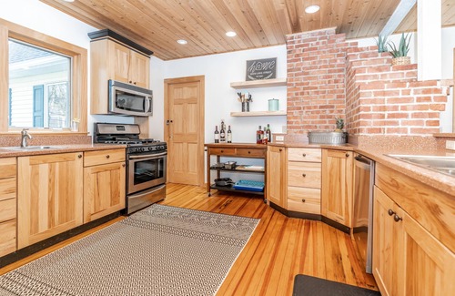 "Best of Both" has a large welcoming lakefront porch with plenty of room for grilling and chilling. Yard games for the kids and an easy trail to explore the rocks on the shore make this an inviting place for the whole family. Our home features 4 bedrooms and 2 sitting areas, as well as a washer and dryer and Wi-Fi. Need a first-floor bed near a bath? We've got you covered with a pull-out sofa bed on the main floor. Rainy day? We've stocked puzzles and board games for lots of family competitions. Kitchen amenities include plenty of dishes, pot and pans, and a dishwasher for your convenience. Our dining table features easy seating for 7 in addition to stool seating for 3 at the breakfast bar.