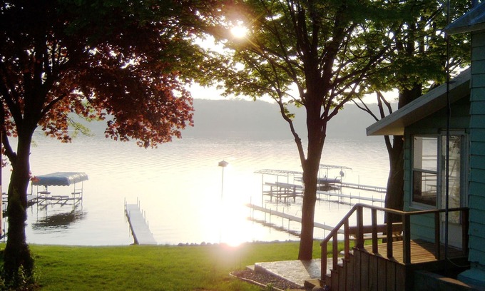 Lakefront cottage on first basin of Lake James. Dock, sandy bottom, great sunset | Cottage in Angola