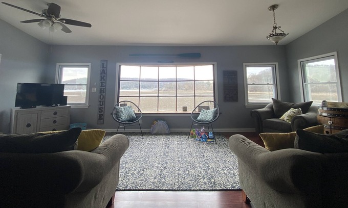Arrive and enjoy this 3BR cottage built on the water of Cuba Lake. 3 bedrooms, 5 queen beds, 1 bathroom. Fully stocked kitchen with fridge, conventional stove and oven, microwave, coffee maker and Keurig, pots & pans, etc. Wireless Wi-Fi included. Living area with seating that overlooks the lake. Smart TV and DVD player included.