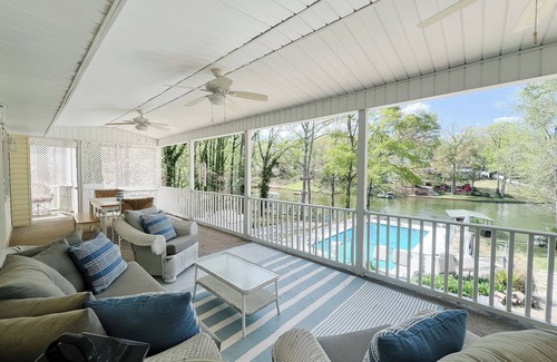 Our quiet neighborhood is perfect for enjoying lake life and relaxation. Enjoy your morning coffee on the spacious porch, and rest assured that guests have access to the entire house, including the pool and lake. Please note that during the busy summer season, the boat dock is shared with the owner's other property.