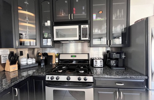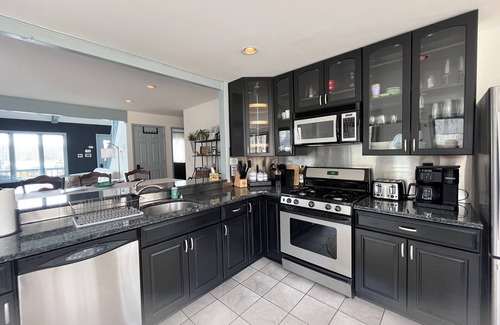 On sunny days, throw open the windows and let the mountain breeze roll in while you cook in our fully equipped kitchen—or give one of the amazing local restaurants a call for top-notch takeout. Relax on one of our two decks, or walk right across the street to our private dock. It’s the perfect spot to sip your favorite drink by the water.