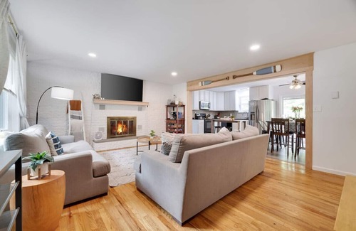 ☀ renovated living room; comfy furniture, gas fireplace, flat-screen Smart TVS