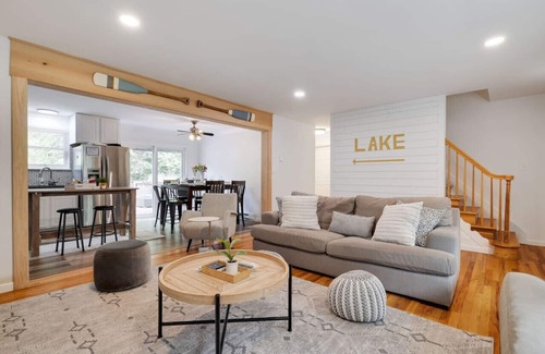 As guests, you will have full access to this beautiful home, including the full kitchen, charming bedrooms, hot tub, and laundry facilities. Best of all, you can enjoy lake access via a private dock. Free parking is available on-site.