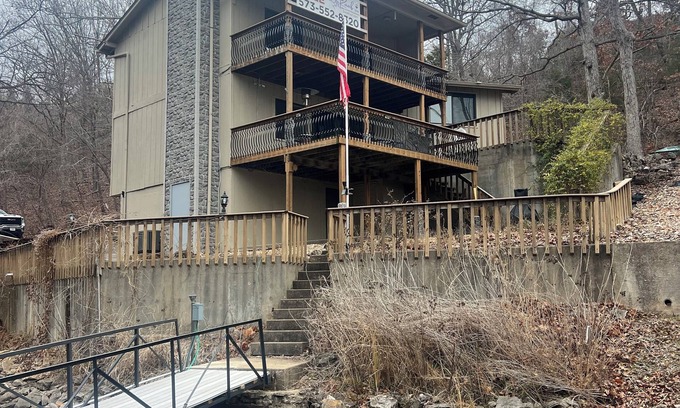 Welcome to our beautiful 3-bedroom, 2-bathroom lakefront retreat at the Lake of the Ozarks! This charming home offers a perfect blend of comfort and adventure. Inside, you'll find spacious living areas with cozy furnishings, a fully equipped kitchen, and comfortable bedrooms to ensure a restful stay.