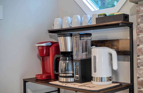 ● Keurig, coffee pot, and kettle with complimentary coffee and tea