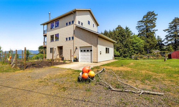 If you are searching for a private lakefront haven, look no further than this spacious home on Cape Meares Lake. Walk only 0.2 miles to Cape Meares Beach for blissful days of fun in the sun. Enjoy the use of two provided bikes for added entertainment. Let the kids play in the lakefront yard, which also features a wood-burning firepit.