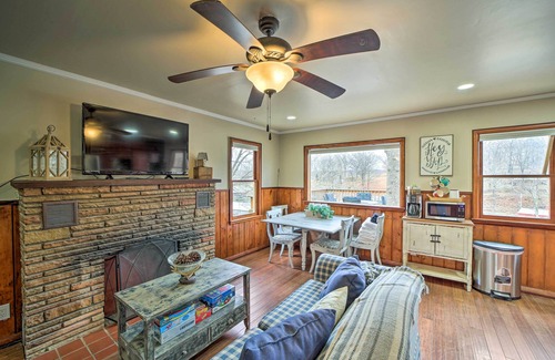 Located in Eucha, this welcoming cottage brings it all within your reach. Thanks to the convenient onsite parking, you can either leave your vehicle behind and enjoy a short 5-minute walk to Grand Lake O' the Cherokees, or easily tackle the quick 2-minute drive to Little Blue State Park.