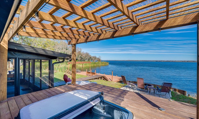 Embrace carefree waterfront living at this 4-bedroom, 2.5-bath vacation rental in Lake Panasoffkee, FL! This charming home is adorned with nautical décor and comes jam-packed with amenities for the whole family — use the private dock for all your aquatic adventures, have a friendly ping pong tournament, or soak your muscles in the hot tub, all with a gorgeous backdrop of the lake. When the setting sun invites you to wind down for the evening, start up the fire pit and have s'mores for dessert!