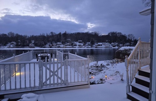 ~ Directly on Water with Two Spacious Decks (Upper and Lower) with High-End Patio Furniture, Boat House (Please Be Mindful of Windy Days and Close the Umbrella on the Upper Deck)