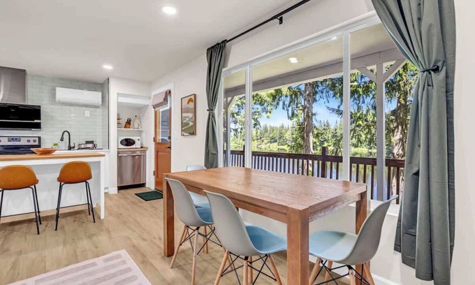 Relax at this serene 1-bed, 1-bath private unit with its own entrance and full floor to yourself. Sleeps 4 with queen bed, sleeper sofa, steam shower, and private deck with lake views. Shared lakefront yard with separate upstairs unit. 150 ft of lake access, kayaks, fire pit, BBQ, fishing gear provided. Peaceful getaway near Snohomish & Monroe. Not a party house.