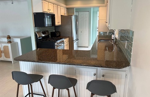 The home features two inviting living rooms, each with a Roku-enabled TV for streaming your favorite shows. One bedroom also has a TV. Two cozy gas fireplaces (one on each level) add warmth and charm, especially during fall or winter stays. The downstairs living room includes an air hockey table and a closet stocked full of family board games, making it a perfect hangout spot for kids and grown-ups alike.