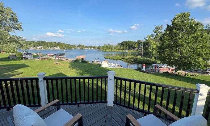 This bright and airy lakefront home in Lowell, Michigan is the perfect getaway for families, friend groups, or anyone seeking relaxation, fun on the water, and cozy evenings by the fire. The house features 3 comfortable, spacious bedrooms—one with a king bed, one with a queen, and one with four twin beds (2 bunks, twin, and trundle)—plus a pack 'n play and a twin rollaway bed for extra sleeping space. There are two full bathrooms: one with a shower and one with a shower/bathtub. A washer and dryer are also available for guest use.