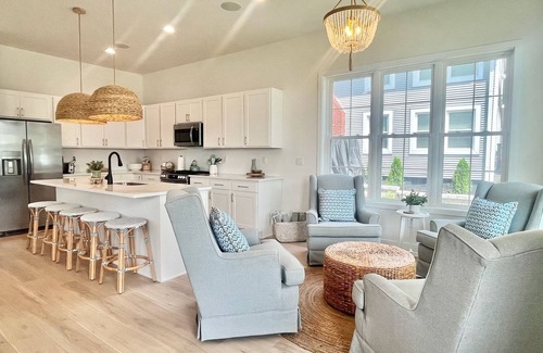 The main floor has an open concept family room, dining room and kitchen and is fully-equipped with new appliances, new furniture and a large, flat screen TV. This large space with plenty of seating makes our home perfect for small or large gatherings. There are two king bed master suites and three queen bed bedrooms with luxury mattresses and bedding so you can enjoy maximum comfort during your stay. The attic and large basement/game room are the cherry on top for families with kids, as they provide additional beds to sleep in and more space to spread out and have fun!