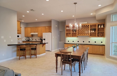 This Gorgeous single family home features vaulted ceilings, spacious bedrooms, with flat screen TVs all with Netflix and full YouTube TV, three and a half large bathrooms, a chef’s kitchen with granite counter tops and appliances, two large refrigerators, a laundry room with washer and dryer, central AC throughout, ceiling fans in every room. The Maximum number of adults allowed on the property at any given time is 8.