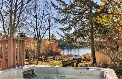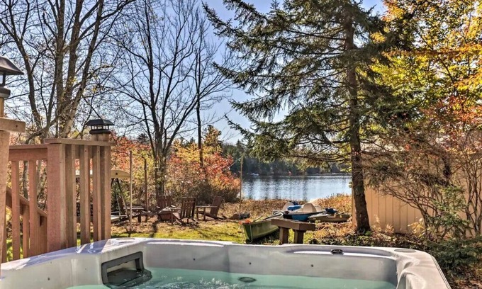Lakefront Home Pocono Summit home w Beach+Hot Tub+Watertoys! 5min to Kalahari is located in Pocono Summit. Lakefront Home Pocono Summit home w Beach+Hot Tub+Watertoys! 5min to Kalahari provides accommodation, featuring Air Conditioner, Pool, Bedding/Linens, among other amenities. This Cabin features Air Conditioner, Pool, Bedding/Linens, to make your stay a comfortable one.