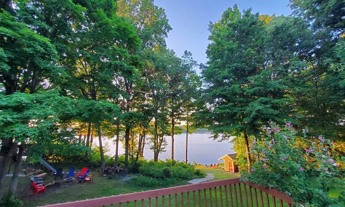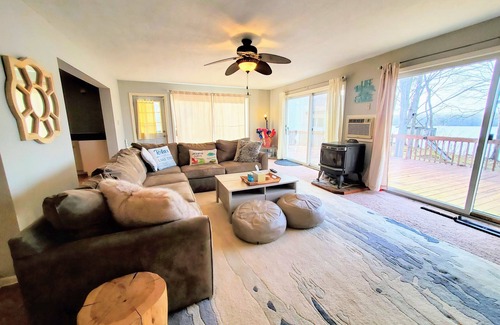 The perfect balance of sprawling and cozy. With 8 bedrooms + huge dining/living room + upstairs den + detached rec room, your family/friends will never forget this special lake house. Step outside to enjoy the serene beauty of surrounding nature: swim, fish, kayak or paddleboat from the dock. Gather around the fire pit for s'mores and storytelling, then head inside to enjoy the fireplace/pellet stove. Fast WiFi. This home is the ultimate destination for your next vacation, reunion or retreat!