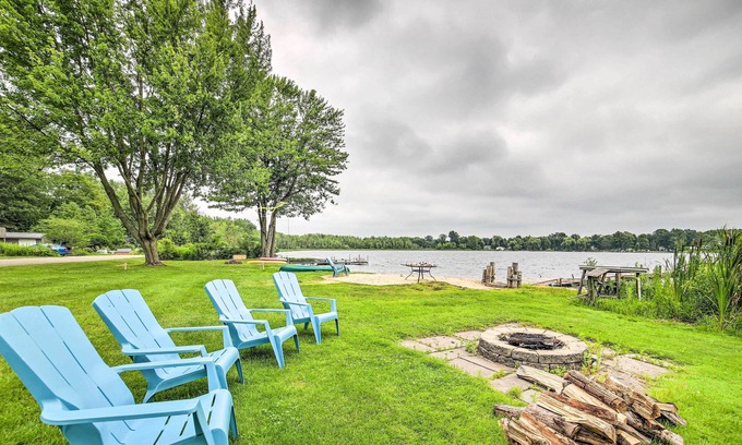 Relaxing lake days await your stay at this newly remodeled, 3-bedroom, 1-bath waterfront home in Ada! This Michigan vacation rental offers stunning lake views, a private beach, a deck with a dining area, and all the modern amenities to have you feeling right at home. Spend days fishing from the private dock, skiing at Cannonsburg Ski Area, or making the short drive to experience the beauty of Lake Michigan! Bring days to a close with drinks shared with friends around the fire pit!