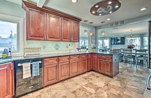 You're in for the ultimate Fox Lake retreat when you stay at this vacation rental, nestled on the shore of Pistakee Lake - also known as Nippersink Creek. This 5-bedroom, 4-bathroom vacation rental house provides easy access to fun and is complete with 2 game rooms, a children's pirate ship, a dock, the best sunset views, and 2 kayaks for lake explorations! Plus, you'll have room to park your boat trailer and launch your boat from the ramp on-site! Bring your family for an unforgettable stay!