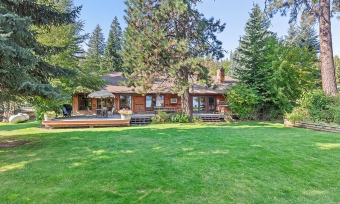 Lakefront paradise with level lawn to private sandy beach and dock on beautiful Spirit Lake. Pickleball court & parking for five plus vehicles. Sleeps 16. Five minutes from town: (groceries, restaurants, fuel). Travel time to the cabin is about twenty-five minutes from Coeur d'Alene, and 50 minutes from Spokane.