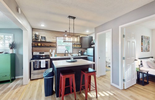 Escape to the serene beauty of Lake Houston with a stay at Owls Nuest, a modern 2-bedroom, 1-bath home that comfortably sleeps 5 guests. Nestled high in the trees, this charming house offers a treehouse-like experience with stunning views of the lake from every room.