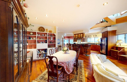 The lovely lake view continues inside, thanks to plentiful picture windows. Soaring ceilings, hardwood floors, and traditional decor make the open-plan space feel like home. The full, well-equipped kitchen makes meal prep easy, and there’s plenty of dinnertime seating between the breakfast bar, window-front table, dining room table, and picnic table outside. Snuggle up together each evening for some TV before drifting off to one of three well-appointed bedrooms - but not before one last toast to booking the perfect lakeside escape.