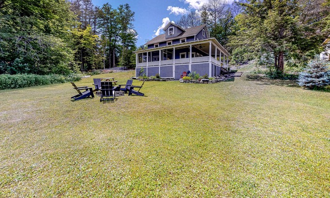 Lakefront home with huge yard, firepit, grill & wraparound porch - near hiking is located in Fair Haven. Lakefront home with huge yard, firepit, grill & wraparound porch - near hiking provides accommodation, featuring Internet, Kitchen, Laundry, among other amenities. This House features Internet, Kitchen, Laundry, to make your stay a comfortable one.