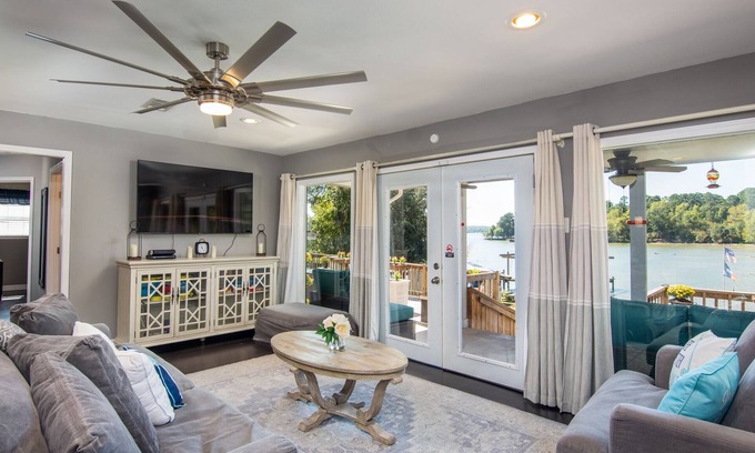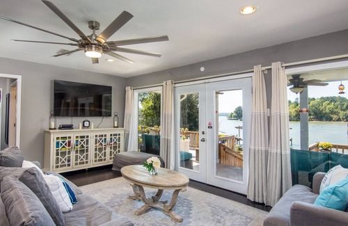 Unwind into vacation mode in the living area while dinner simmers. Wall-to-wall windows showcase sweeping lake views. There are smart TVs in every room makes it easy to catch up on all your favorite shows (streaming available using your own accounts).