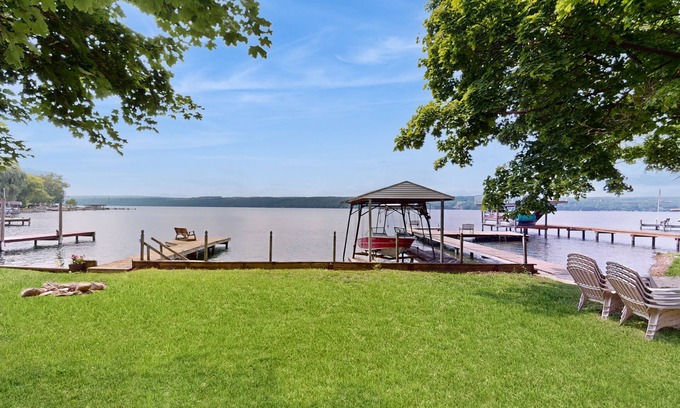 Lakefront home with large deck, dock, kayak, & gorgeous views is located in Valois. Lakefront home with large deck, dock, kayak, & gorgeous views provides accommodation, featuring Security/Safety, Fireplace/Heating, Air Conditioner, among other amenities. This House features Security/Safety, Fireplace/Heating, Air Conditioner, to make your stay a comfortable one.